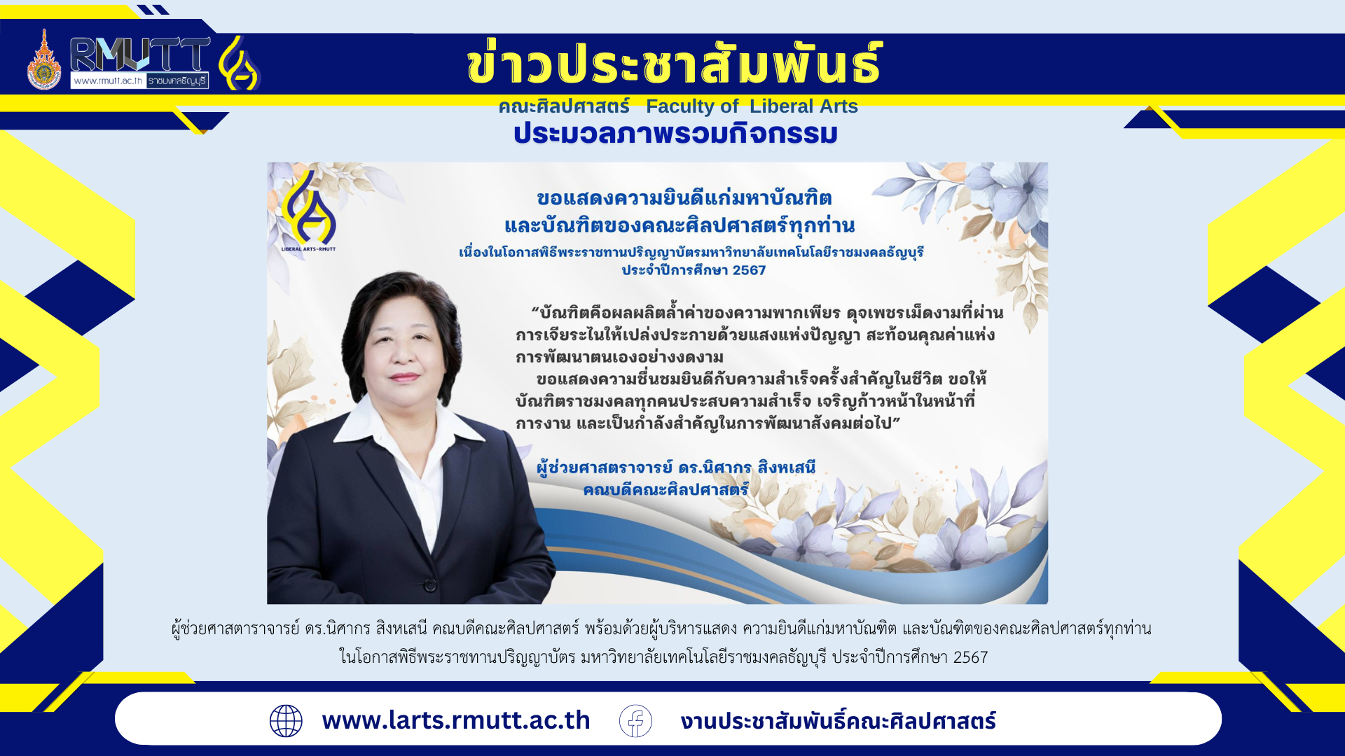 วันพุธที่ 5 พฤศจิกายน พ.ศ. 2568 ผู้ช่วยศาสตราจารย์ ดร.นิศากร สิงหเสนี คณบดีคณะศิลปศาสตร์ ให้การต้อนรับคณะกรรมการการประเมินตนเองตามเกณฑ์ประกันคุณภาพการศึกษาเพื่อการดำเนินงานที่เป็นเลิศ (EdPEx) โดยมีคณะกรรมการประเมินฯ ประกอบด้วย รศ.นพ.ฉัตรชัย มิ่งมาลัยรักษ์ ประธานกรรมการ รศ.ดร.ภญ.สุชาดา พิริยะประสาธ์ กรรมการ รศ.ดร.เบญญา กสานติกุล กรรมการ ผศ.ดร.สิริแข พงษ์สวัสดิ์ ที่ปรึกษามหาวิทยาลัย อาจารย์อลงกต […]