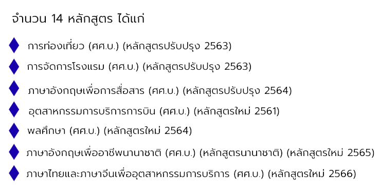 (ต่อมาเปลี่ยนเป็นหลักสูตรสาขาวิชาการจัดการการโรงแรม)