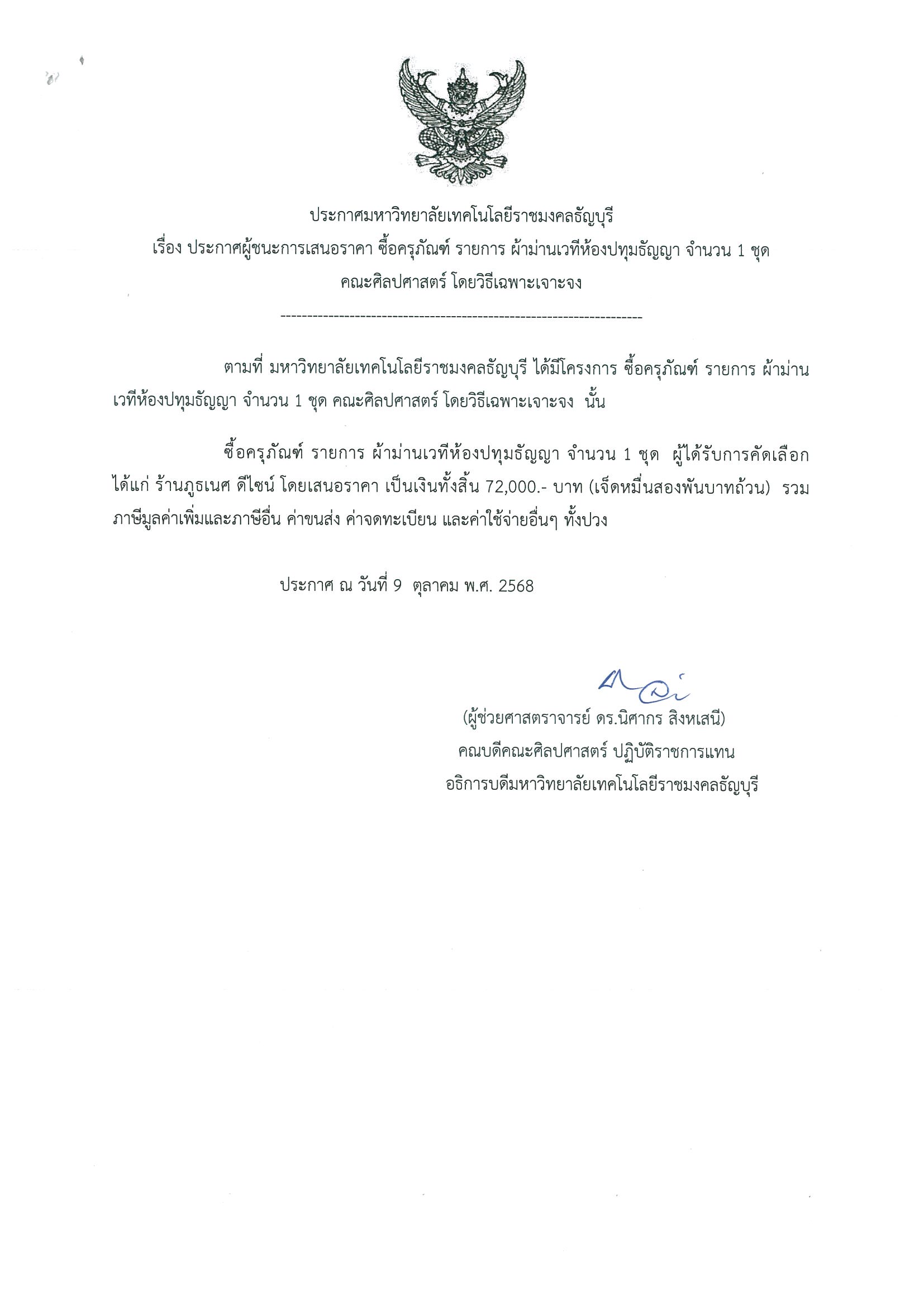 ประกาศผู้ชนะการเสนอราคาซื้อครุภัณฑ์รายการเก้าอี้ห้องปทุมธัญญา จำนวน 36 ตัว คณะศิลปศาสตร์ ประกาศ ณ วันที่ 9 ตุลาคม 25689 ตุลาคม 2025ประกาศราคากลางซื้อครุภัณฑ์ผ้าม่านเวทีห้องปทุมธัญญา จำนวน 1 คณะศิลปศาสตร์ ประกาศ ณ วันที่ 9 ตุลาคม 25689 ตุลาคม 2025 ประกาศผู้ชนะการเสนอราคาซื้อครุภัณฑ์ ผ้าม่านเวทีห้องปทุมธัญญา จำนวน 1 ชุด คณะศิลปศาสตร์ ประกาศ ณ วันที่ 9 ตุลาคม 2568 Share0 สุจิตรา Related posts9 ตุลาคม 2025ประกาศผู้ชนะการเสนอราคาซื้อครุภัณฑ์รายการเก้าอี้ห้องปทุมธัญญา จำนวน 36 ตัว คณะศิลปศาสตร์ ประกาศ ณ วันที่ 9 ตุลาคม 2568Read more Comments are closed.