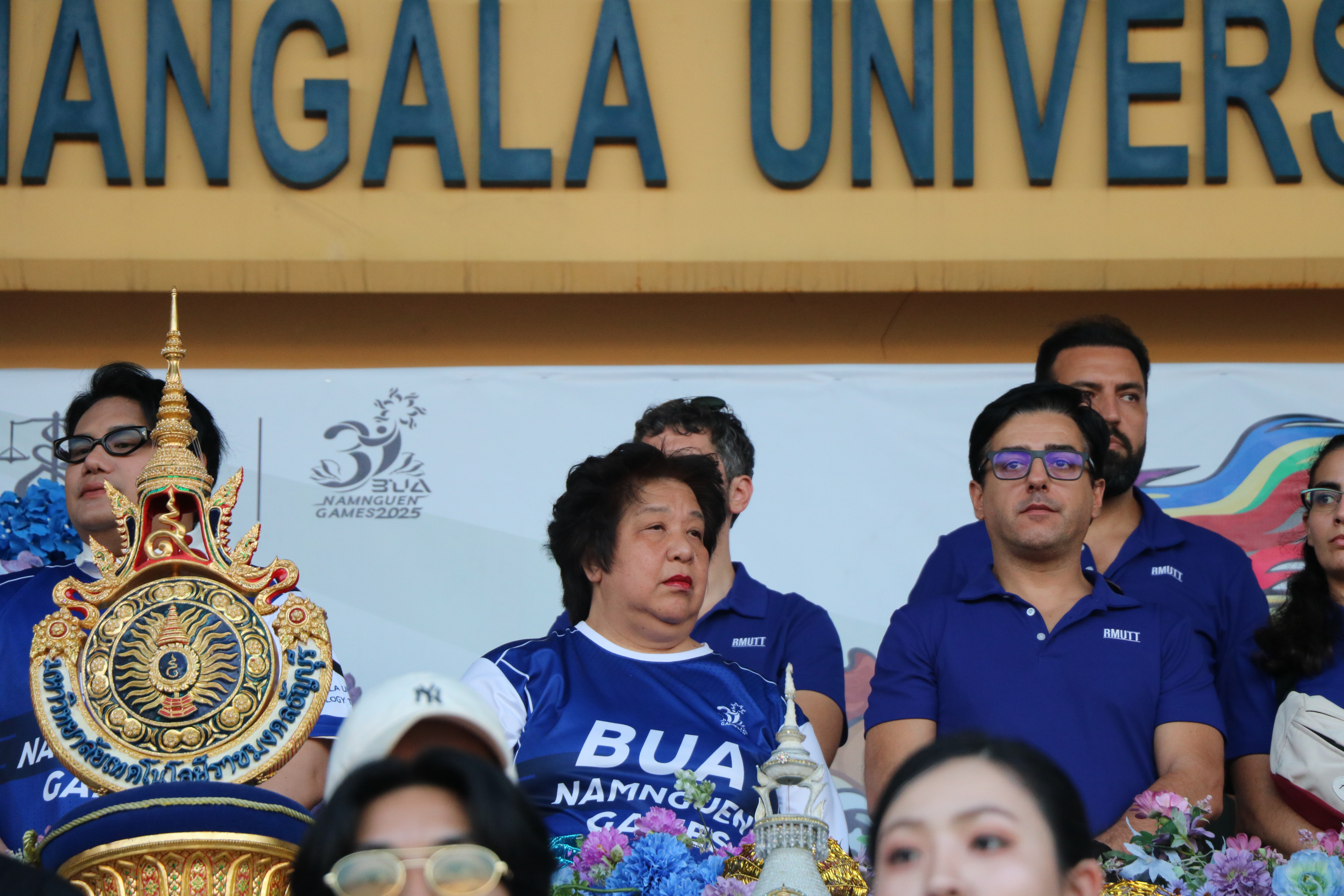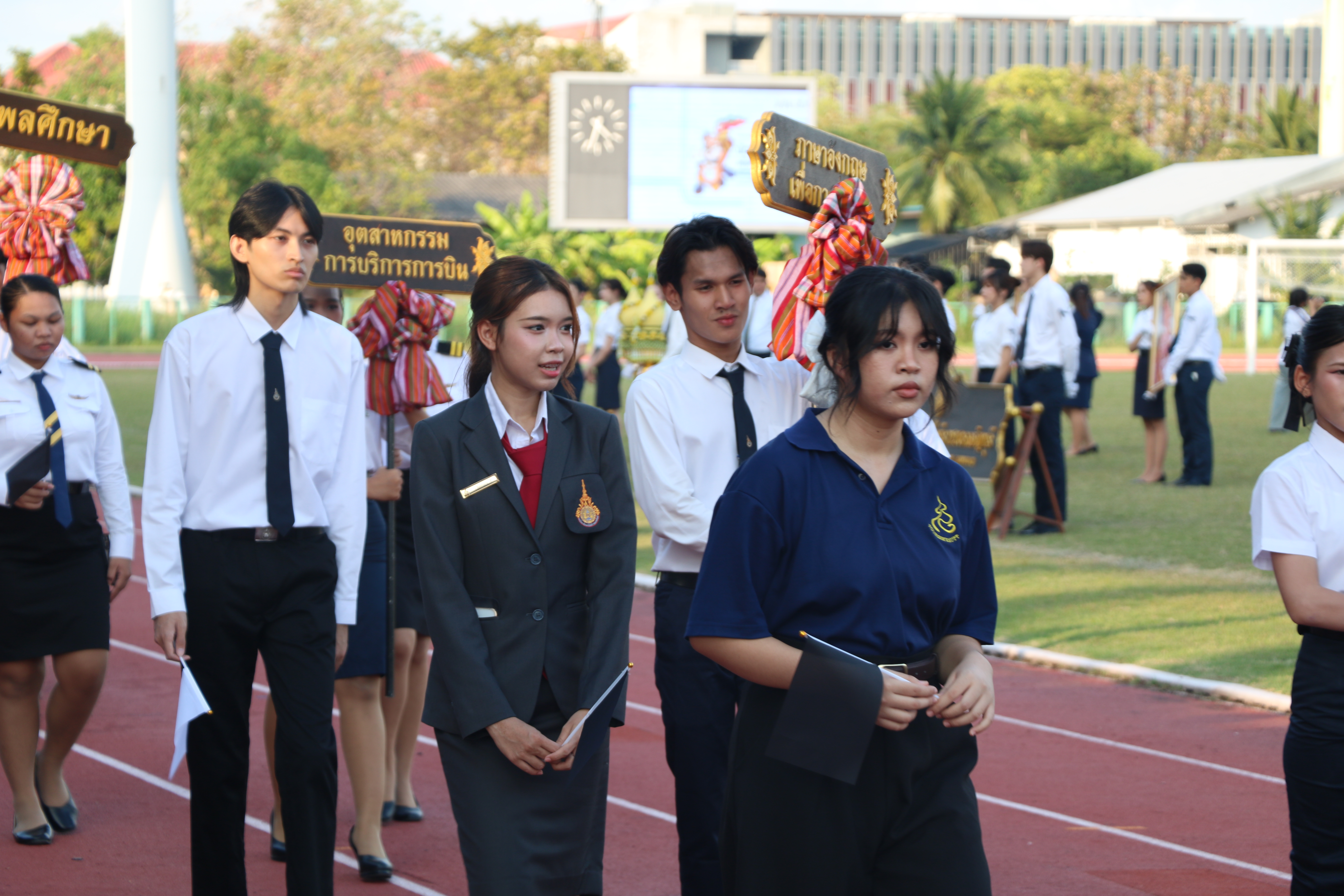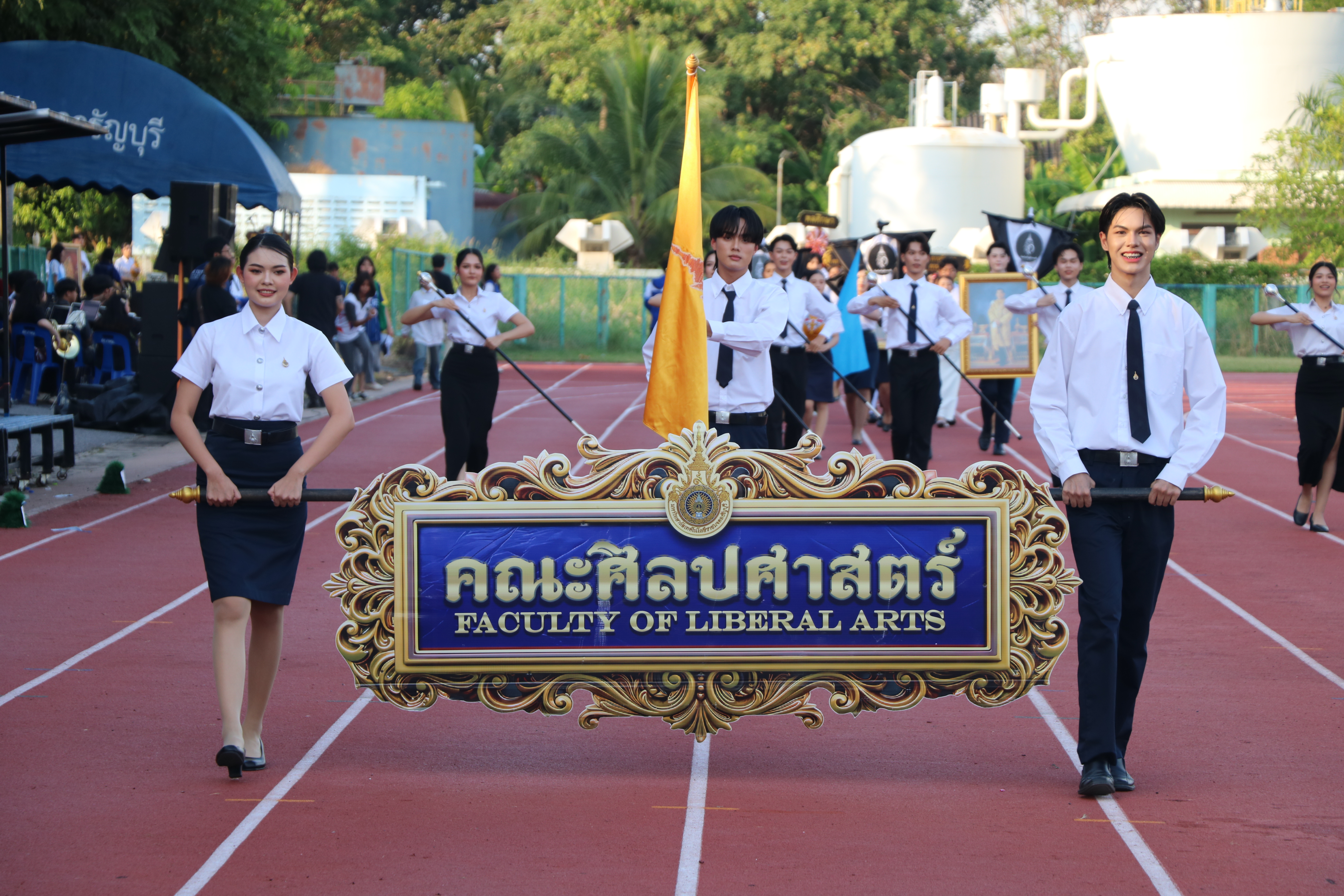 ผศ.ดร.นิศากร สิงหเสนี คณบดีคณะศิลปศาสตร์ พร้อม ผศ.ดร.ณัฐณกรณ์ คำแฝง รองคณบดีฝ่ายพัฒนานักศึกษา ร่วมพิธีเปิดกีฬาบัวน้ำเงินเกมส์ ครั้งที่ 31 ณ สนามกีฬามหาวิทยาลัยเทคโนโลยีราชมงคลธัญบุรี