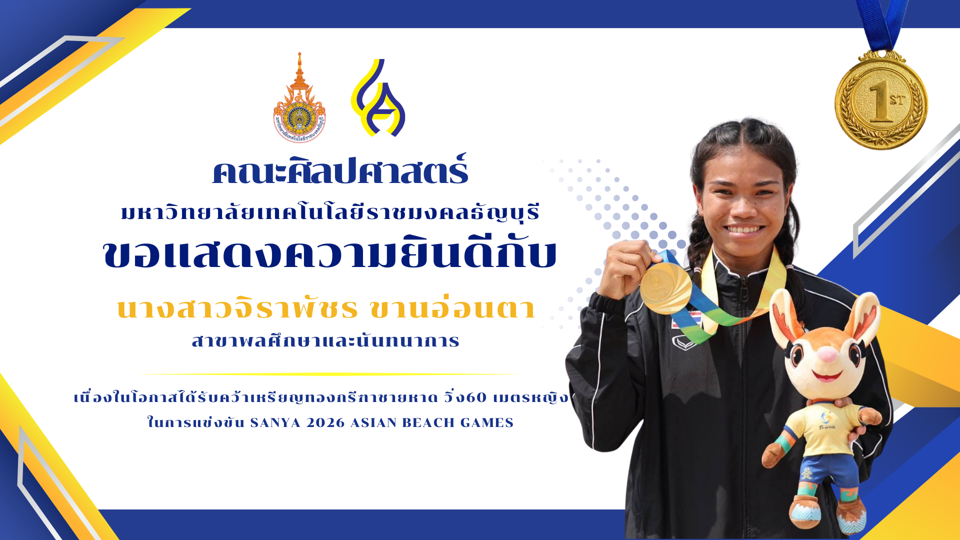 ภาพบรรยากาศโครงการประกวดสหกิจศึกษาดีเด่น ประจำปีการศึกษา 2568 (ระดับมหาวิทยาลัย) วันที่ 6 กุมภาพันธ์ 2569 ณ ห้องประชุมนลินวิทย์ ชั้น 1 อาคารเฉลิมพระเกียรติ 6 รอบ พระชนมพรรษา6 กุมภาพันธ์ 2026คณะศิลปศาสตร์ขอแสดงความยินดีกับนักศึกษาสาขาภาษาอังกฤษเพื่อการสื่อสารเนื่องในโอกาสได้รับรางวัลประเภทนานาชาติ รางวัลรองชนะเลิศ อันดับ 17 กุมภาพันธ์ 2026 คณะศิลปศาสตร์ขอแสดงความยินดีกับนักศึกษาสาขาการท่องเที่ยวเนื่องในโอกาสได้รับรางวัลประเภทสังคมศาสตร์ มนุษยศาสตร์ และการจัดการรางวัลชมเชย Share0 นายกฤษณา โป๊ะแก้ว Related posts30 เมษายน 2026คณะศิลปศาสตร์ขอแสดงความยินดีกับนางสาวจิราพัชร ขานอ่อนตาสาขาพลศึกษาและนันทนาการเนื่องในโอกาสได้รับคว้าเหรียญทองกรีฑาชายหาด วิ่ง60 เมตรหญิงในการแข่งขัน Sanya 2026 Asian Beach GamesRead more Comments are closed.