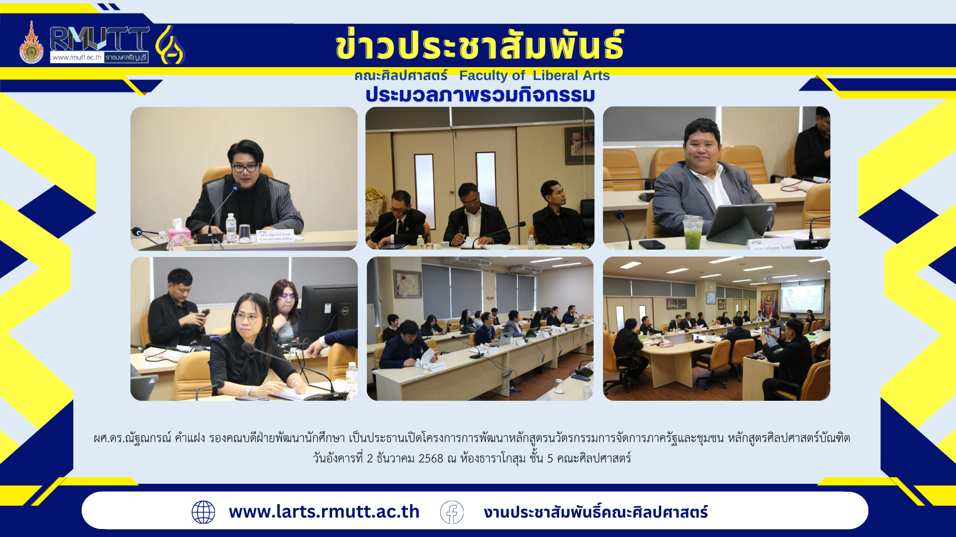 คณะศิลปศาสตร์ขอแสดงความยินดีกับดร.พลอยวรินทร์ แสงสมบุญเนื่องในโอกาสที่เป็นอาจารย์ที่ดำเนินโครงการบรการวิชาการ แบบจัดหารายได้จากหน่วยงานถายนอก ดีเด่นสูงสุดระดับคณะ ประจำปีการศึกษา 2567