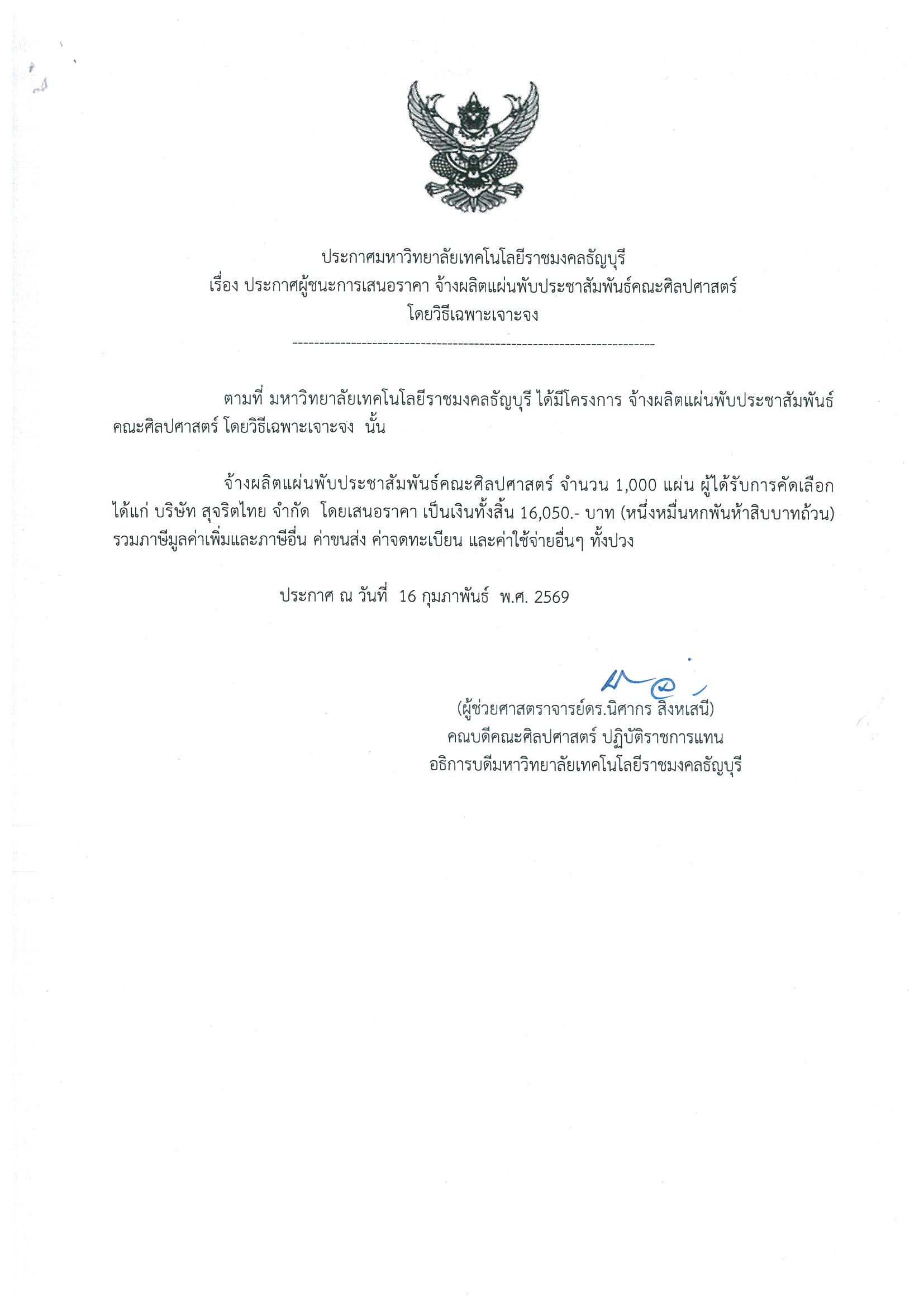 ประกาศราคากลางจ้างซ่อมแซมอาคาร จำนวน 3 งาน คณะศิลปศาสตร์ ประกาศ ณ วันที่ 16 กุมภาพันธ์ 256916 February 2026ประกาศผู้ชนะการเสนอราคา จ้างซ่อมแซมอาคาร จำนวน 3 รายการ คณะศิลปศาสตร์ วิธีเฉพาะเจาะจง ประกาศ ณ วันที่ 16 กุมภาพันธ์ 256916 February 2026 ประกาศผู้ชนะการเสนอราคาจ้างผลิตแผ่นพับประชาสัมพันธ์คณะศิลปศาสตร์ โดยวิธีเฉพาะเจาะจง ประกาศ ณ วันที่ 16 กุมภาพันธ์ 2569 Share0 สุจิตรา Related posts16 February 2026ประกาศผู้ชนะการเสนอราคา จ้างซ่อมแซมอาคาร จำนวน 3 รายการ คณะศิลปศาสตร์ วิธีเฉพาะเจาะจง ประกาศ ณ วันที่ 16 กุมภาพันธ์ 2569Read more Comments are closed.